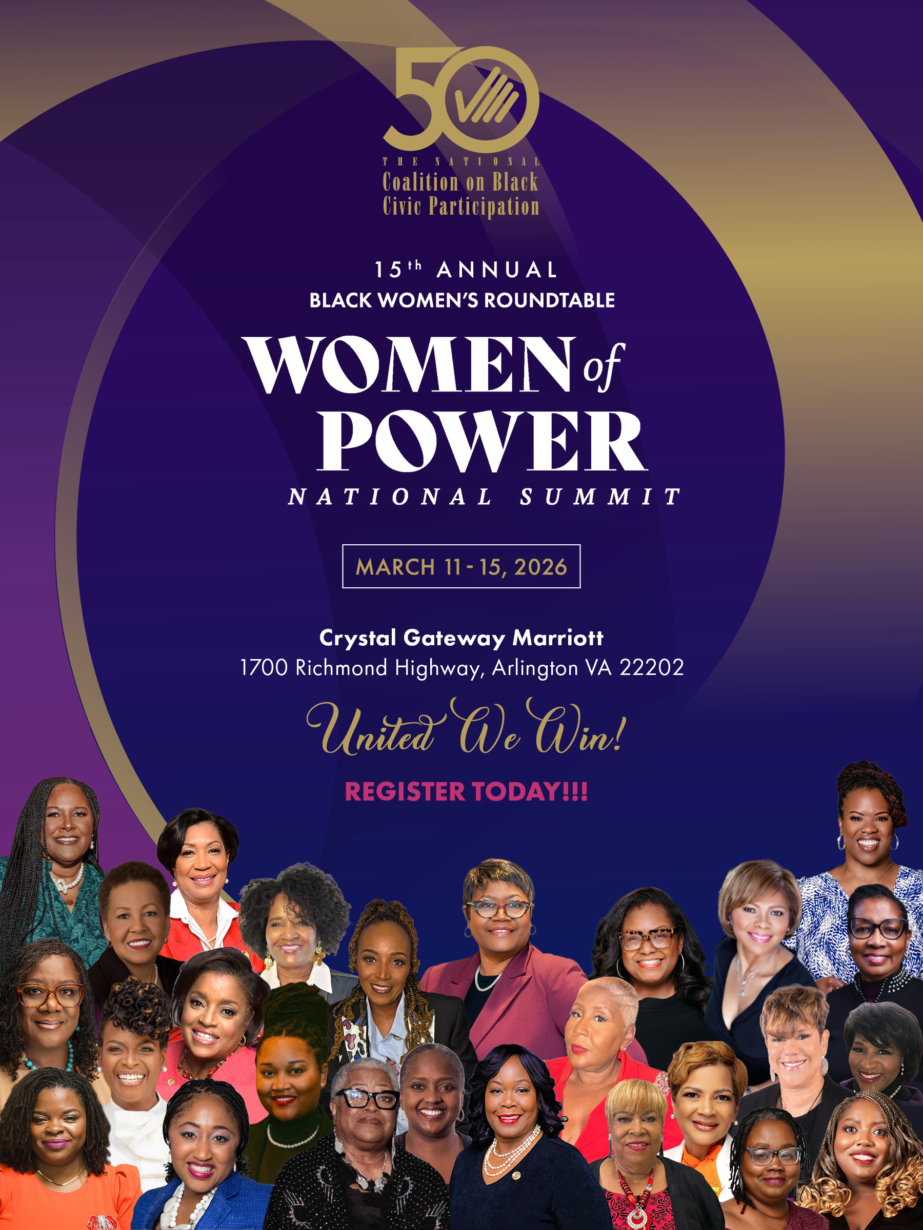 If you believe 2026 is a moment for Black women to stand united, strengthen our collective power, and move forward with purpose, we invite you to join us for the 15th Annual Black Women's Roundtable (BWR) "Women of Power" National Summit, taking place March 11-15, 2026 in Arlington, BA and Washington, DC.